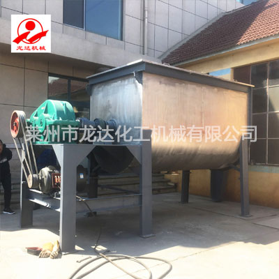 臥式混合機由U形容器、螺帶攪拌葉片和傳動部件組成;U形的長體筒體結(jié)構(gòu),保證了被混合物料(粉體、半流體)在筒體內(nèi)的小阻力運動。正反旋轉(zhuǎn)螺條安裝于同一水平軸上,形成一個低動力的混合環(huán)境,螺帶狀葉片一般做成雙層或三層,外層螺旋將物料從兩側(cè)向中央?yún)R集,內(nèi)層螺旋將物料從中央向兩側(cè)輸送,可使物料在流動中形成更多的渦流,加快了混合速度,提高混合均勻度;采用皮帶輪帶動擺線減速機驅(qū)動,相對于齒輪減速機的大扭矩,皮帶傳動的彈性連接有在超載時保護傳動部件的優(yōu)勢。其功能是將各種成份的粉料、液體混合均勻,具有適用性廣、混合均勻度好、物料殘留少、維護保養(yǎng)方便等特點,是粉狀物料混合加工的理想設(shè)備。
